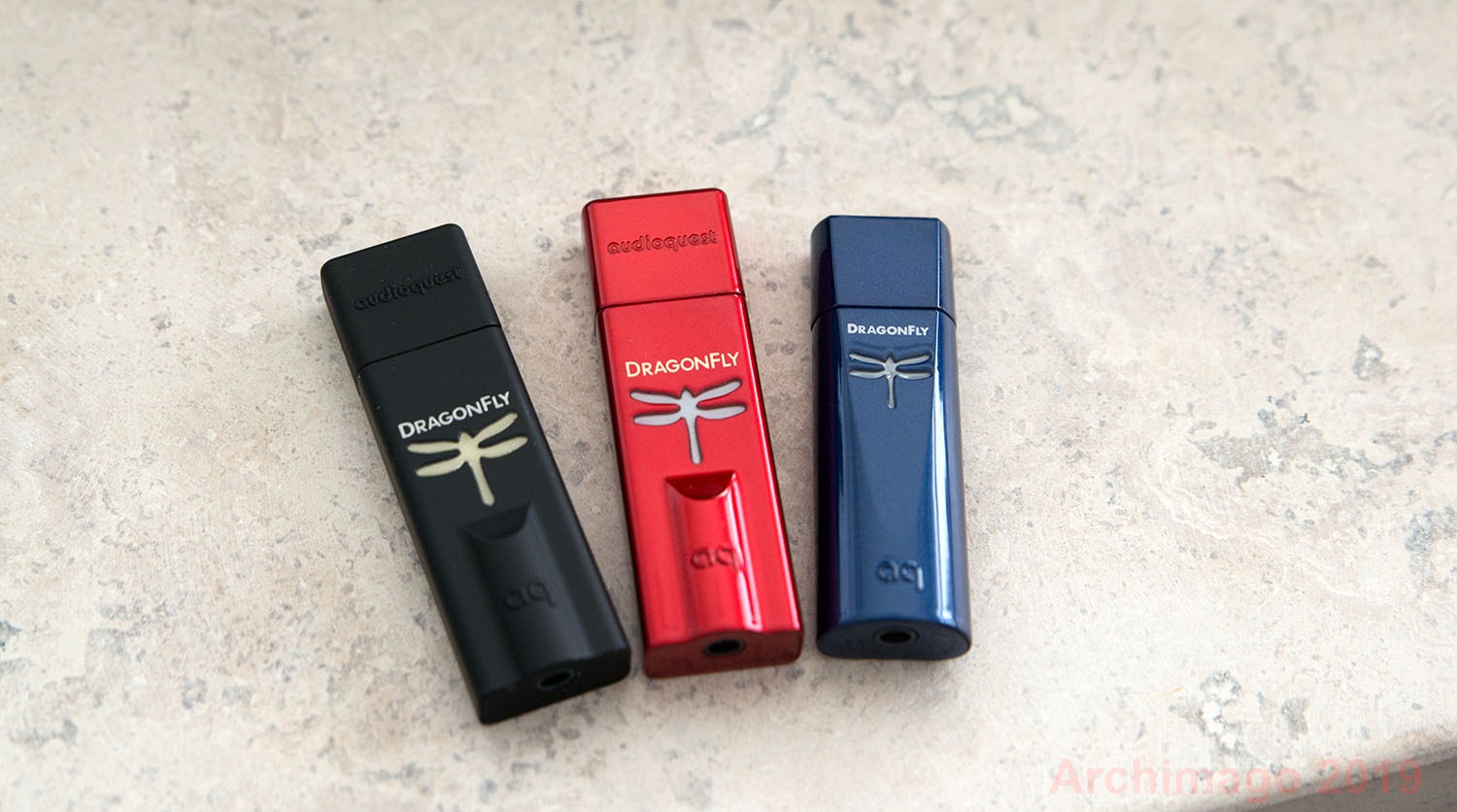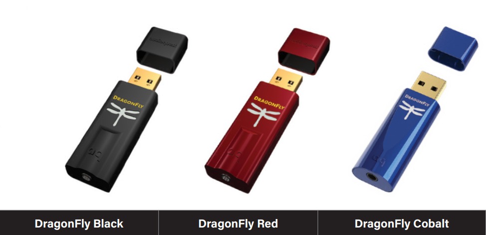 AudioQuest DragonFly Red là USB DAC/amp được ra mắt năm 2016, sử dụng chip DAC ESS ES9016 32-bit, hỗ trợ giải mã 24-bit/96kHz, với đầu ra 2.1V mạnh mẽ, tương thích với hầu hết tai nghe và hệ thống âm thanh. DragonFly Cobalt, ra mắt năm 2019, là phiên bản cao cấp hơn với chip DAC ESS ES9038Q2M, bộ lọc “slow roll-off minimum phase” cho âm thanh tự nhiên, và vi xử lý Microchip PIC32MX274 tiết kiệm điện, tăng tốc độ xử lý 33%.