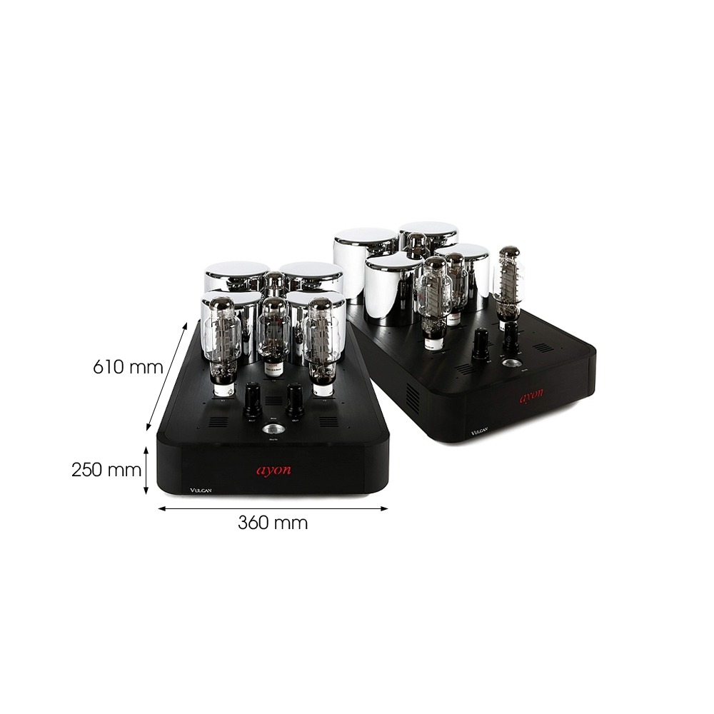 Power ampli Ayon Vulcan Evo Mono là một chiếc mono power ampli single-ended triode (SET) Class A, sử dụng thiết kế dual triode với bóng AA62B và bóng AA82B DHT mới nhất. Với tầng điều khiển của power ampli Ayon Vulcan Evo Mono đã được thiết kế lại hoàn toàn mới và hiện đang hoạt động bằng bóng lái AA20B với đường dẫn tín hiệu ngắn nhất.