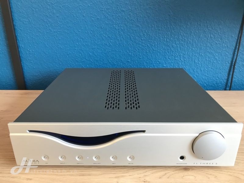 Đại diện đầu tiên không thể bỏ qua đó chính là bộ khuếch đại tích hợp – ampli Audia Flight FL Three S. Ấn tượng nhất trong thiết kế của model này chính là phần khung máy được chế tạo chắc chắn với phần trước làm bằng nhôm dày 10mm, hệ thống nút bấm được làm bằng kim loại và núm xoay âm lượng làm bằng nhôm cứng, tạo nên một thiết kế chắc chắn, có khả năng loại bỏ rung động tuyệt vời. Phần mặt trước của khối ampli này đó chính là màn hình OLED màu xanh lam lớn được đặt phía trước và người dùng có thể dùng điều khiển từ xa vô cùng tiện lợi.